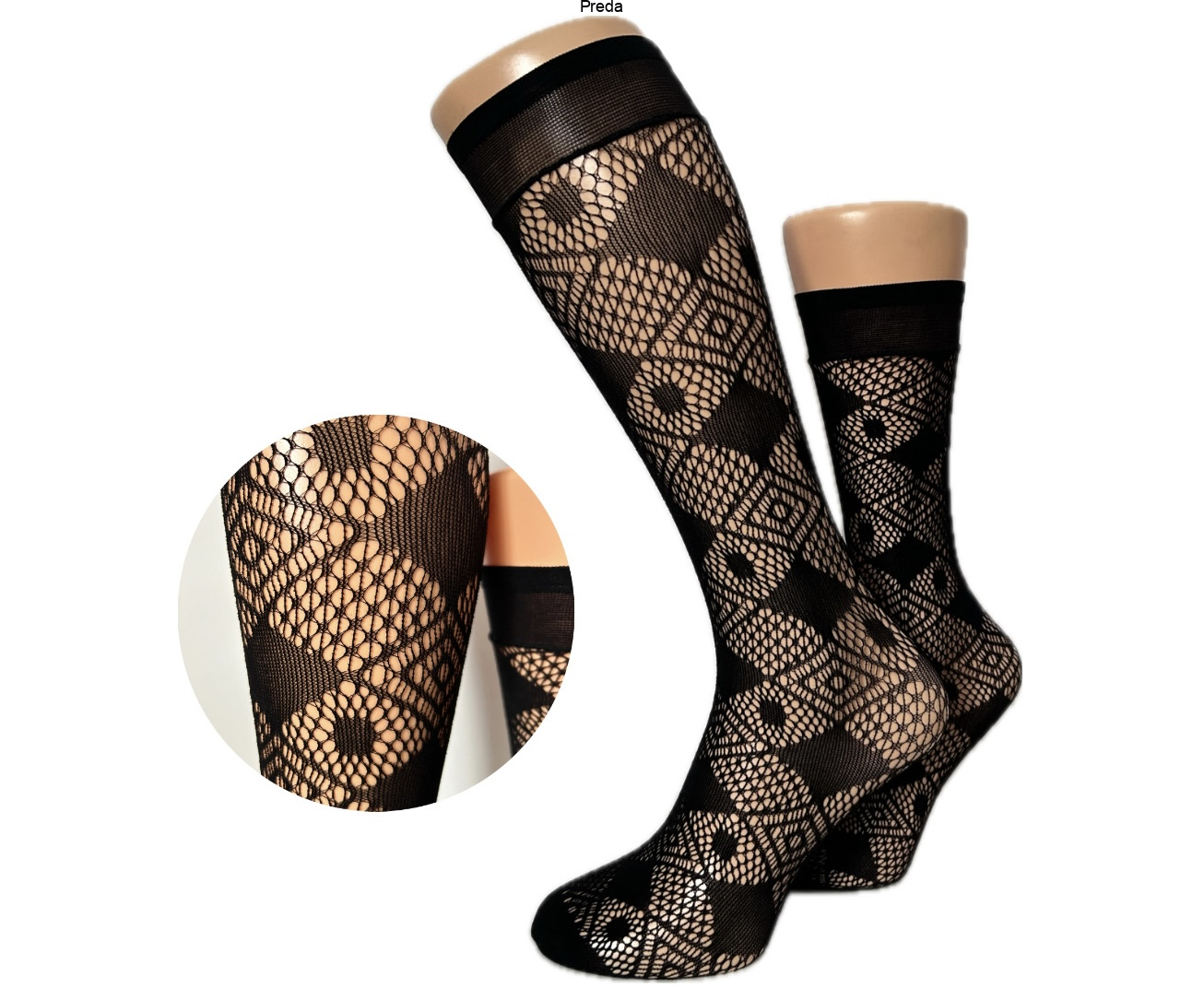 Chcesz dodać swojej stylizacji charakteru i zmysłowości? Podkolanówki damskie Preda w stylu kabaretek z geometrycznym wzorem rombów to modny i kobiecy akcent, który przyciąga spojrzenia!