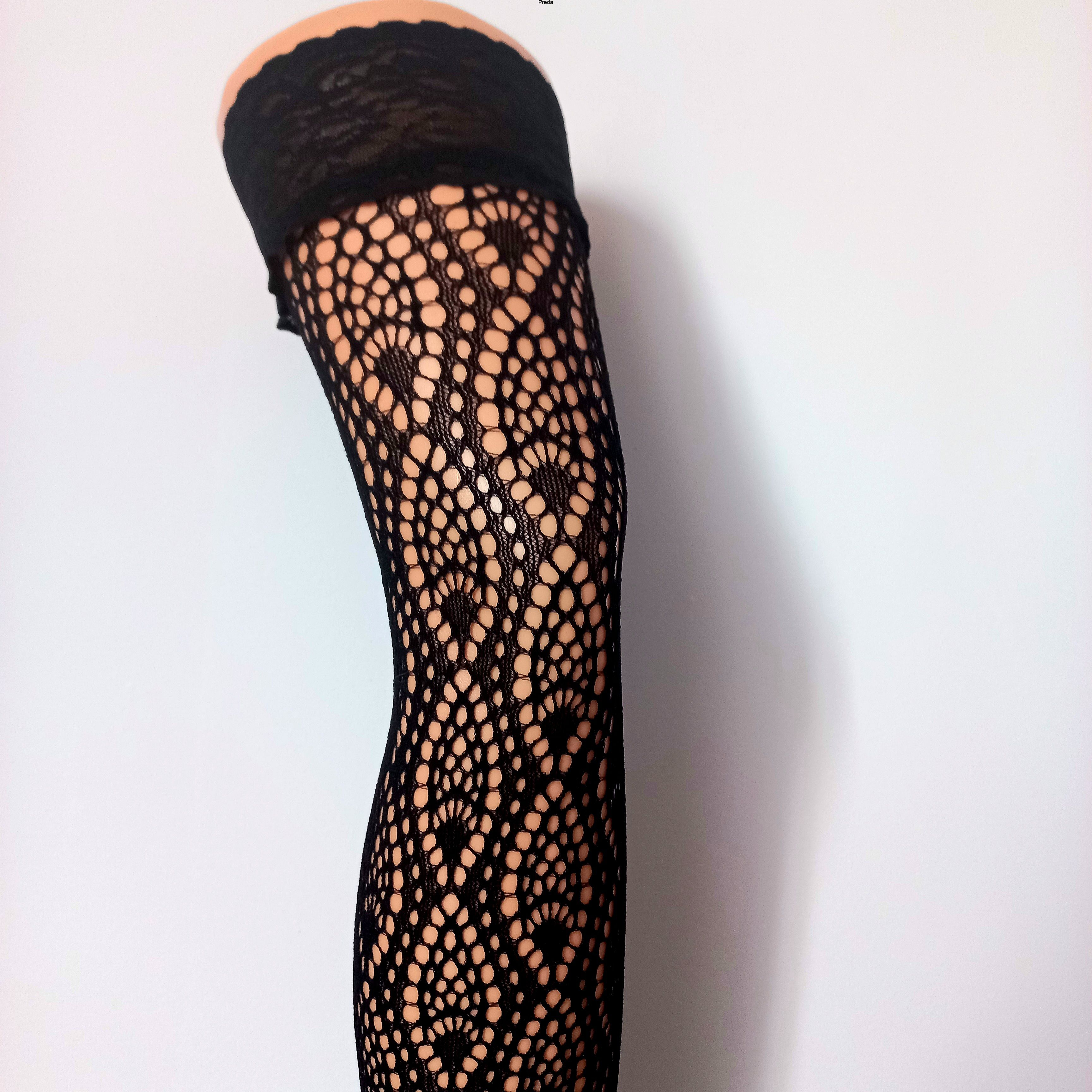 • Pończochy damskie samonośne włoskiej marki FILODORO w fantazyjny ażurek.
