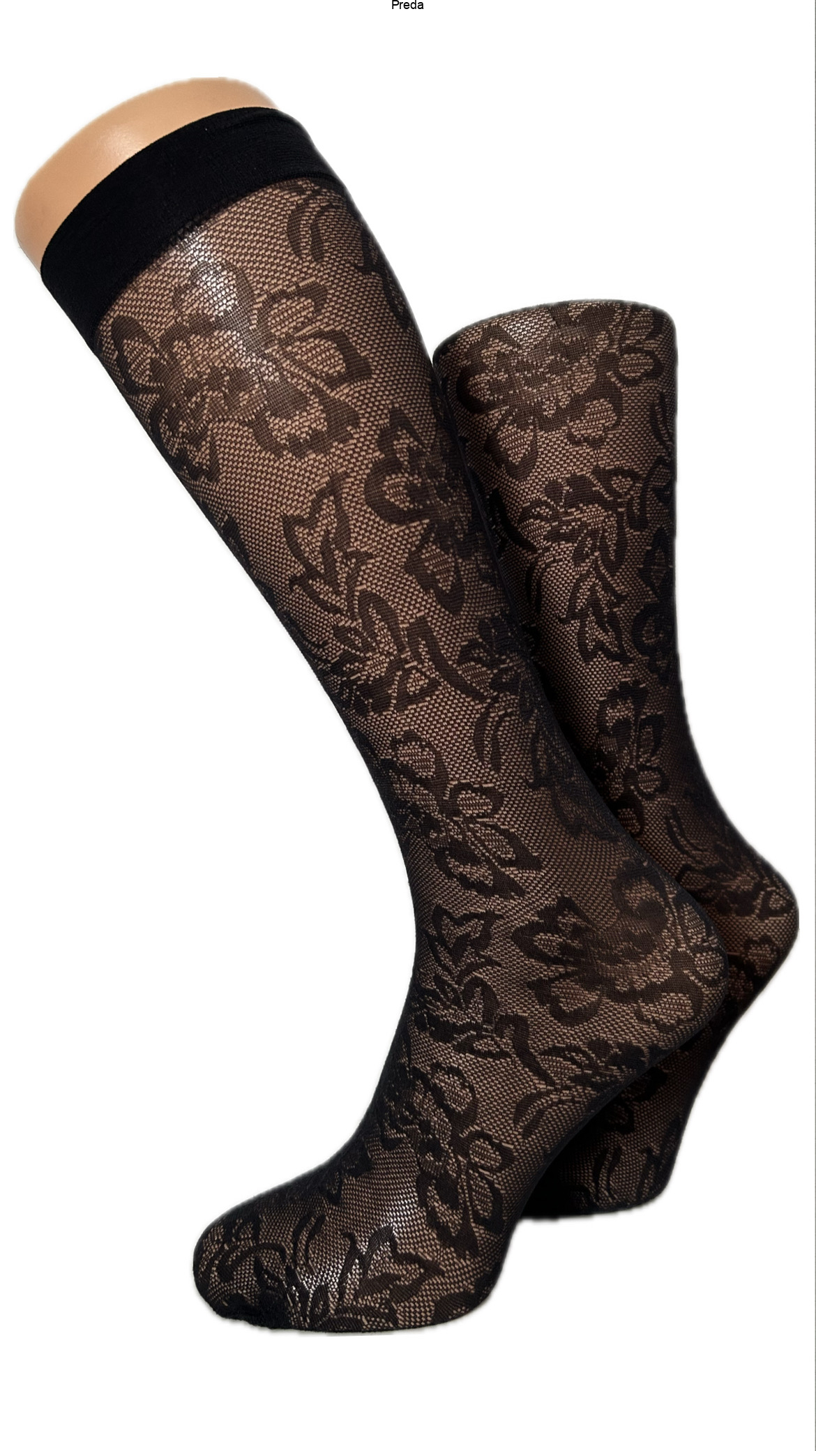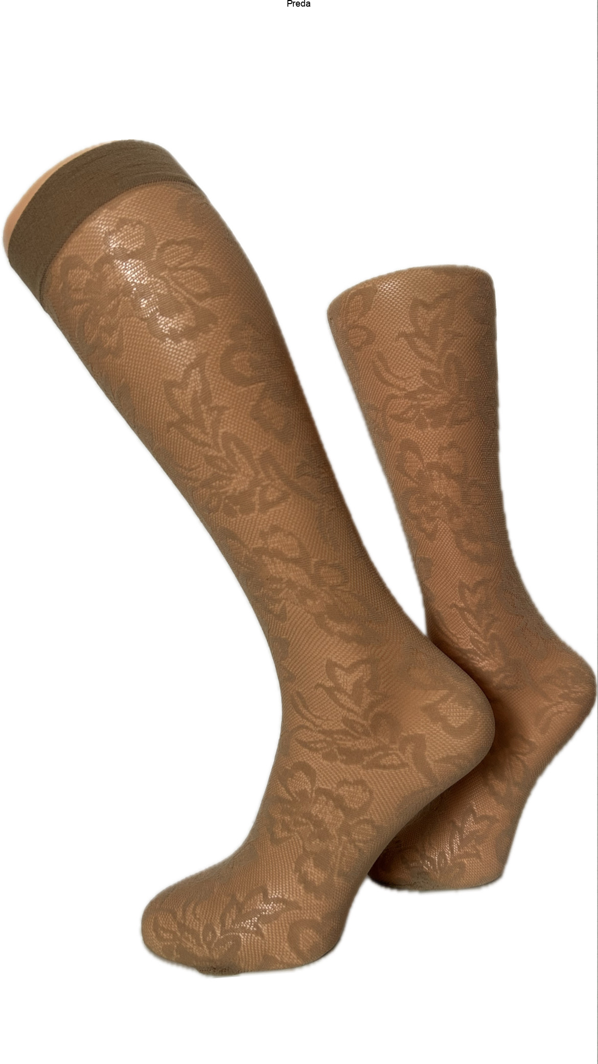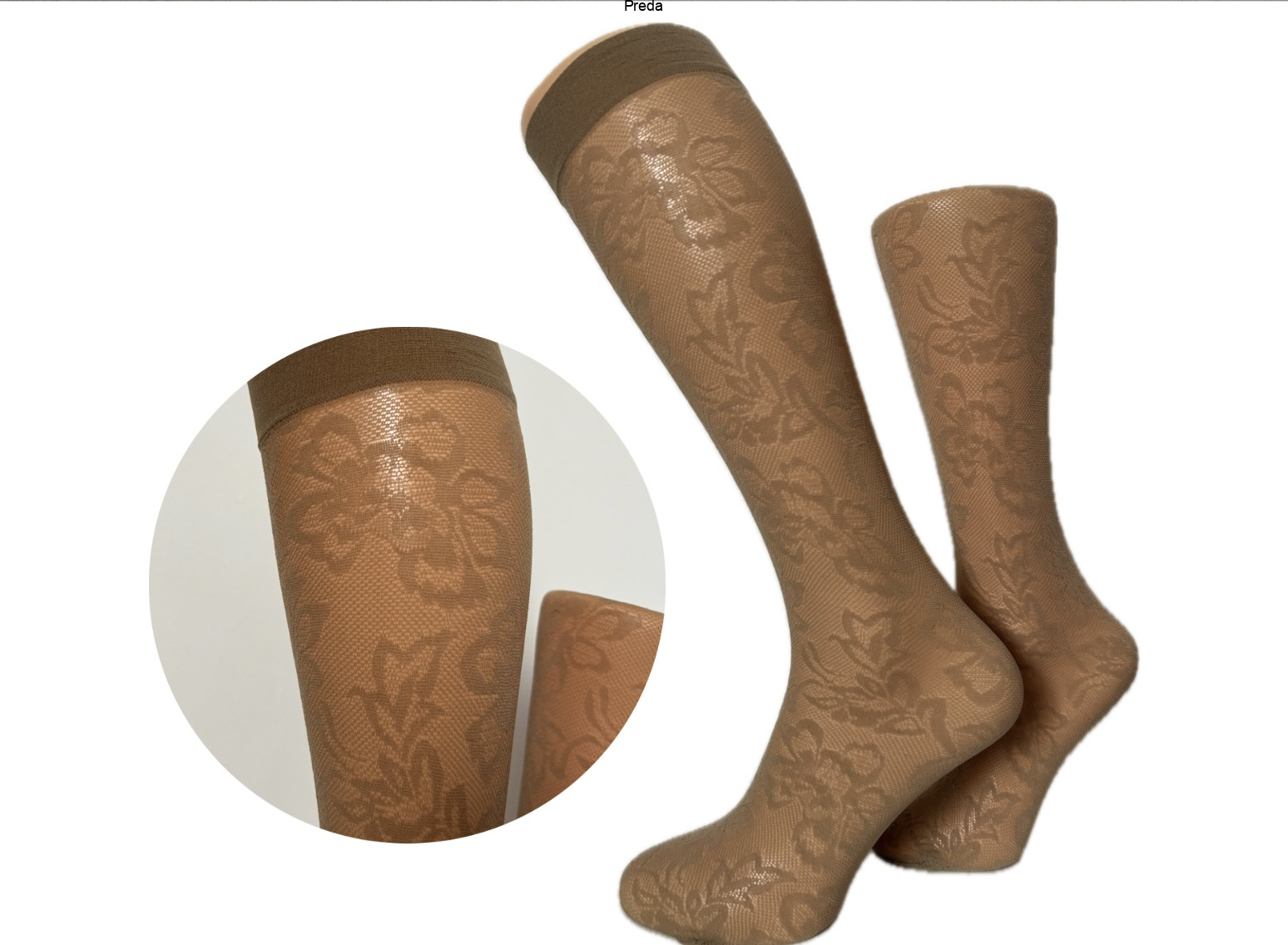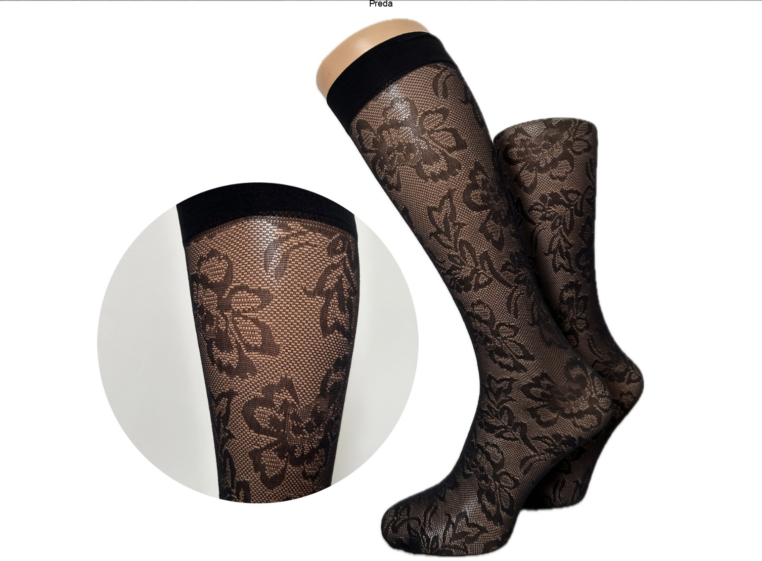 Strona główna » Podkolanówki » Włoskie podkolanówki wzorzyste PREDA w kwiatki beż - czarne, 1 para